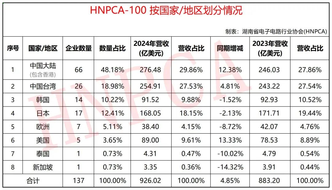 ②.中國臺灣:26家,占比18.98%;總營收為254.91億美元,占比27.53%,同比增長4.81%;