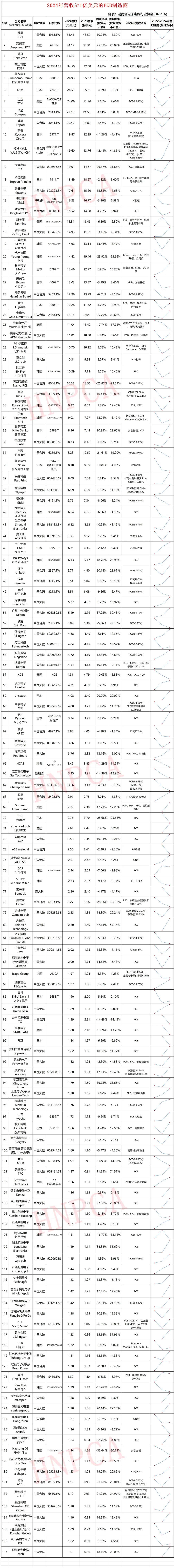 該報告收錄了2024年營收超過1億美元的PCB制造商名單,匯率則是基于美國國稅局IRS(Internal Revenue Service)的年平均匯率。報告有對應(yīng)的英文版,發(fā)在HNPCA英文網(wǎng)站及多個海外社交媒體平臺,供全球PCB行業(yè)同仁參考。同時,HNPCA秘書處熱忱歡迎業(yè)界同仁提出寶貴意見,共同促進(jìn)行業(yè)發(fā)展。